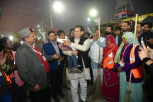 निरीक्षण के क्रम में मंत्री शर्मा ने मेला क्षेत्र में तैनात सफाई कर्मियों से भी बातचीत की और उनके रहने, खाने एवं अन्य मूलभूत सुविधाओं की जानकारी ली। उन्होंने सफाई कर्मियों के कुशल-क्षेम के बारे में पूछते हुए अधिकारियों को निर्देश दिए कि सफाई व्यवस्था से जुड़े कर्मियों को किसी भी प्रकार की असुविधा न होने पाए। इस दौरान मंत्री शर्मा ने स्वास्थ्यकर्मी के एक छोटे बच्चे को दुलार कर मानवीय संवेदना का परिचय भी दिया।